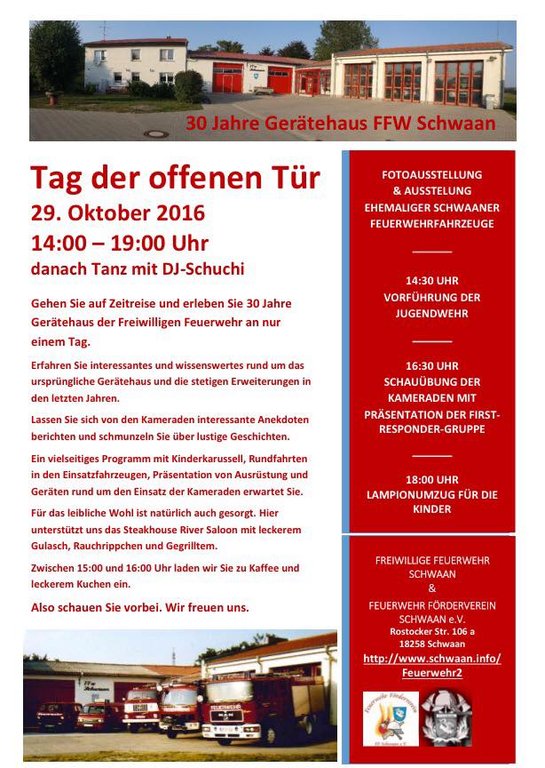 30. Jahre Feuerwehrgerätehaus Schwaan