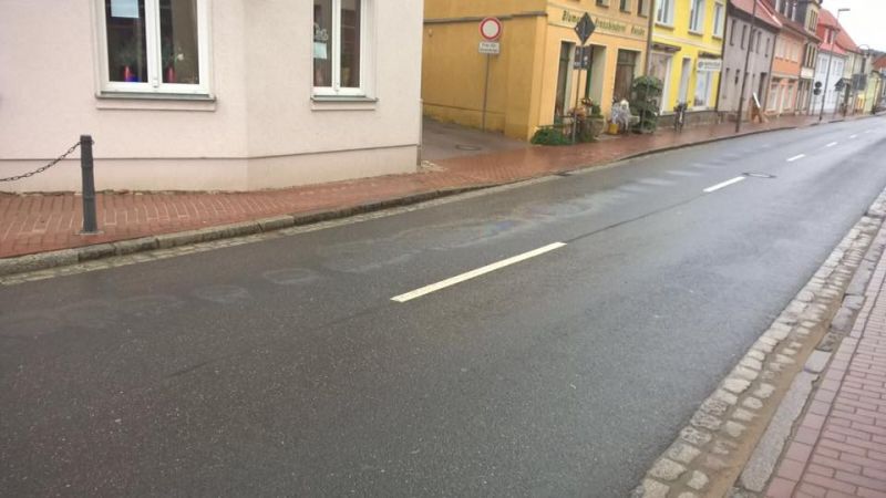 Eine Dieselspur zog sich, in der Alten Weide beginnend, über mehrere Straßen bis schließlich in die Doberaner Straße hin. Mit reichlich Granulat wurde die Straße von der rutschigen Flüssigkeit befreit und die Straßen den Einsatzkräften der Polizei zur "Freigabe" übergeben.
