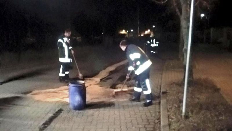 Durch eine Streifenwagenbesatzung wurde im Bereich Schillerstraße eine Ölspur festgestellt. Wir beseitigten die Verunreinigung mit Ölbindemittel und Besen.