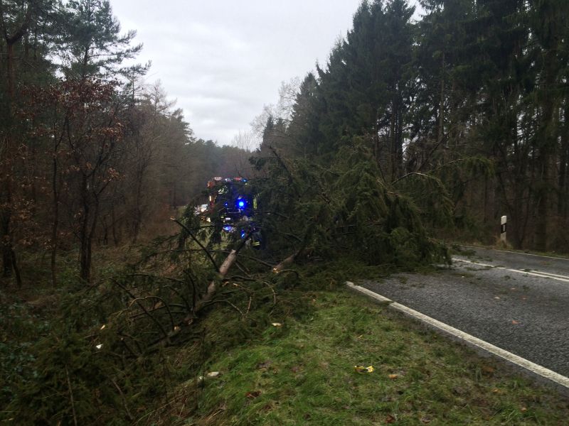 Hilfeleistung Klein, umgestürtzter Baum auf der L142 Höhe Fachkrankenhaus Waldeck am 09.01.2015 um 11:52 Uhr