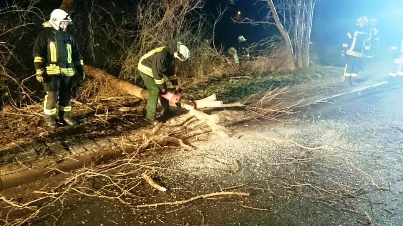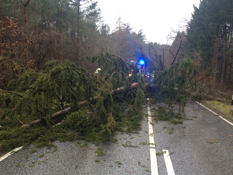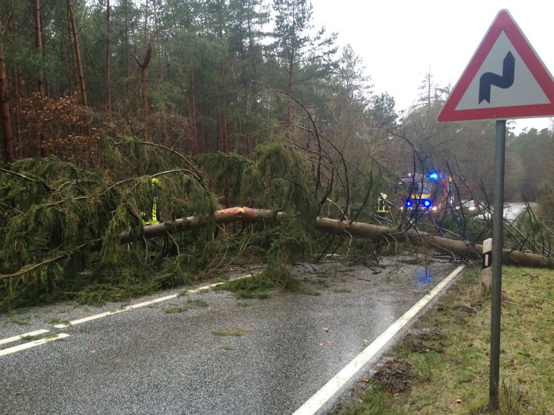 Durch das Orkantief "Elon" wurde eine große Fichte auf der L142 zwischen Schwaan und Göldenitz entwurzelt und versperrte die Landstraße auf ganzer Breite. Wir beseitigten den Baum mit unseren Kettensägen und sorgten somit für eine Freie Durchfahrt.