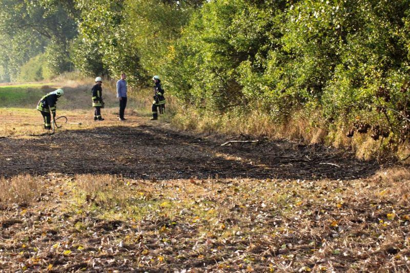 Kinder hatten in der Nähe einer Strohmiete mit Feuerwerkskörpern hantiert und dabei ein Stoppelfeld und eine Hecke in Brand gesetzt. Der Brand wurde relativ zügig mit Wasser gelöscht.