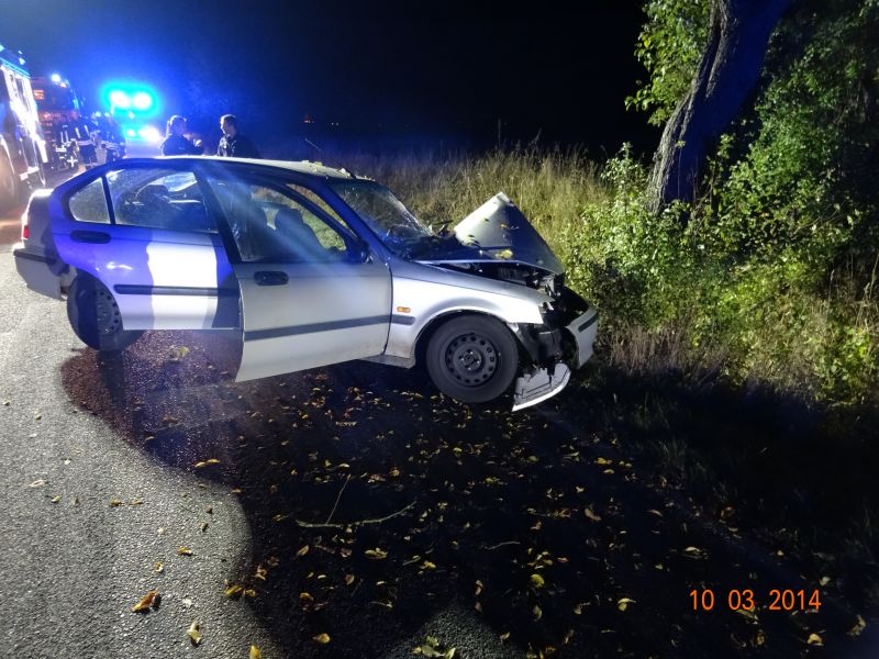 Ein 26 Jahre alter Autofahrer ist in den frühen Morgenstunden des heutigen Tages der Deutschen Einheit in Schwaan mit seinem Auto verunglückt. Der Verkehrsunfall ereignete sich gegen 1 Uhr am Ortsausgang von Schwaan auf der Vorbecker Chaussee. Aus bislang noch ungeklärter Ursache kam der junge Autofahrer laut Aussagen der Polizei mit seinem Honda auf gerader Strecke nach links von der Straße ab und raste frontal gegen einen Baum. Wie die Beamten mitteilten, soll der 26-Jährige nicht angeschnallt und zudem stark betrunken unterwegs gewesen sein. Ein genauer Alkoholwert muß noch ermittelt werden. Der junge Fahrer wurde in seinem Auto bei dem Crash eingeklemmt und mußte von den Kameraden der Freiwilligen Feuerwehr mit schwerer Technik herausgeschnitten werden. Der 26-Jährige erlitt nach erstem Anschein glücklicherweise nur leichtere Verletzungen. Er kam nach Rostock in die Südstadtklinik. Zu ermitteln ist auch noch, ob weitere Mitfahrer in dem Wagen saßen und sich nach dem Unfall entfernten oder herausgeschleudert wurden. Die Feuerwehrleute suchten mit einer Wärmebildkamera die nähere Umgebung nach Personen ab, wurden aber nicht fündig. Die Straße blieb zeitweise voll gesperrt.