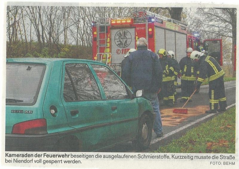 Unsere Feuerwehr wurde zur Beseitigung einer größeren Ölspur in den Wiendorfer Weg gerufen.